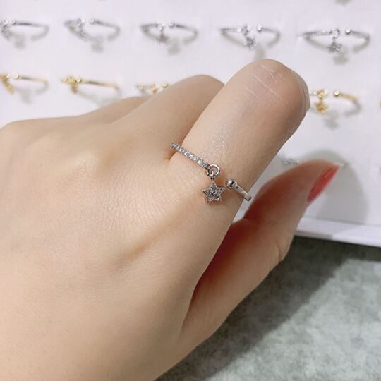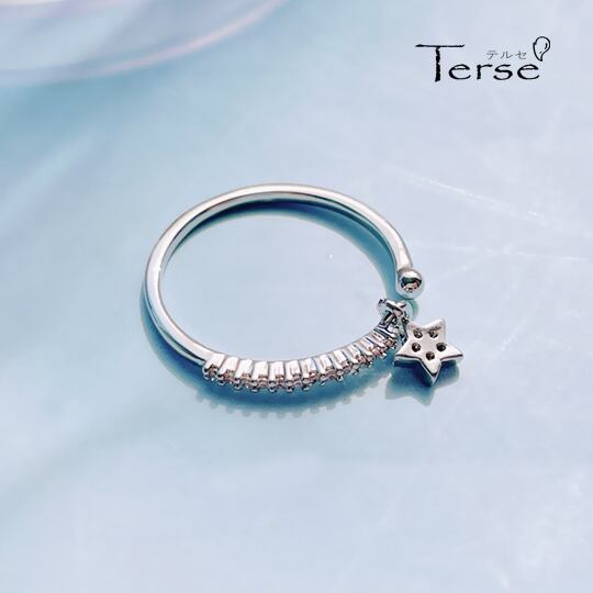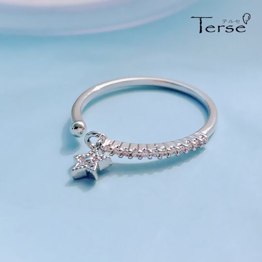 TerseゆらゆらCZダイヤ スター チャーム付きフォークリング 艶やかで優しく上品さのある光りと、かわいらしさとエレガントさの両方を持つ シンプルなので重ね着けにもおすすめなデザイン 気軽に身に付けられるようデザインした逸品は 星 普段使い rs0294as