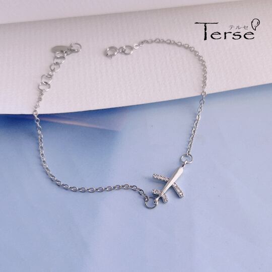 Terse 旅行気分で楽しくなる飛行機モチーフのシルバーチェーンブレスレット レディース エアライン 旅行 海外 国内 空港 エアポート ターミナル 普段使い お出かけ パーティー イベント 食事会 女子会 デート プレゼント bl0064a