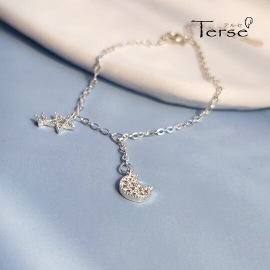 Terse 神秘的な星と三日月のチェーンブレスレット 可愛い 華奢 銀 シルバー スター ムーン 星型 流れ星 夜空 星空 宇宙 レディース ギフト プレゼント 誕生日 記念日 パーティー 二次会 お呼ばれ bl0032a