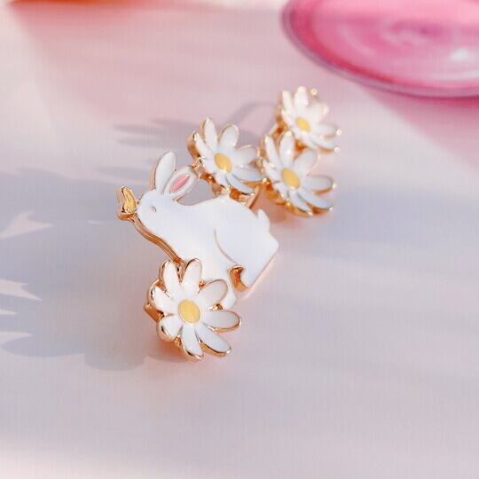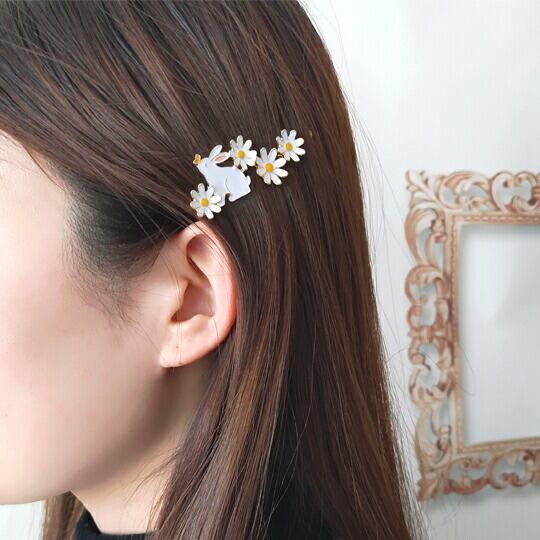 Leafy デイジーのフラワーにかわいいウサギは鼻の先端に蝶を見ているデザインヘアクリップ バターフライ 兎 ヘアクセサリー デート 女子会 ハイセンス 使い勝手の良いクリップ仕様 愛らしいうさぎがモチーフ、エレガントに演出してくれます ha0141a