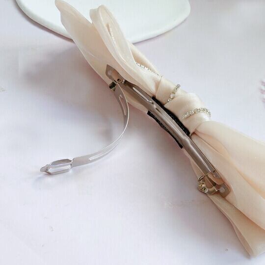 大きめリボンで頭周りを小さく見せてくれるシンプルガーリーなリボンバレッタ 清楚で華奢な女性を演出 シンプルで合わせやすく、フォーマルな場面など使い回しが可能な万能アイテム アイボリーにはキラキララインストーンの縁取りがされて可愛らしい 花火大会 ha0135awh