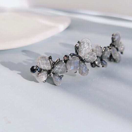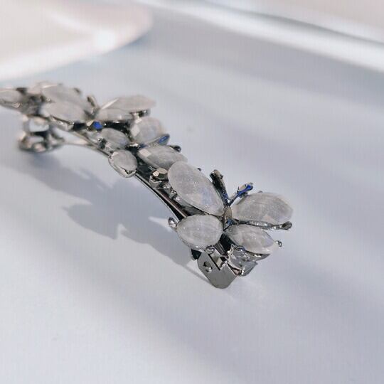 立体感を持たせ蝶々が印象的なバレッタを作りました ヘアクリップ 光沢のあるブラックとグレーカラーのバターフライを散りばめました おだんごヘアや、夜会巻き、アップにした髪にピッタリなアクセサリー アップにしなくてもまとめ髪に挿してもカワイイ 春 ha0105a-04