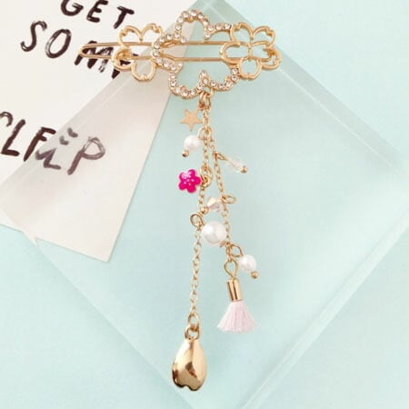 Leafy ピンクのミニタッセル付き桜モチーフフレームピン パッチン留め ヘアピン レディース さくら 花 フラワー ミニパール スター ゴールド 普段使い お出かけ プレゼント ヘアアクセサリー アレンジ 髪留め 髪飾り ha0075