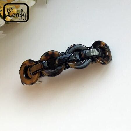 Leafy べっ甲柄の4連サークルバレッタ ブラウン 髪にやさしいカバー付 レディース シーンを選ばず使えるシンプルデザインで使い勝手抜群! おしゃれ アクセサリー アレンジ 髪留め 髪飾り お出かけ イベント デート パーティー 普段使い プレゼント ha0068d 秋