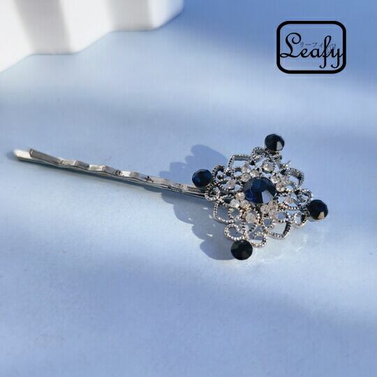 Leafyヘアピン レディース グレー シルバー 銀 スクエア 透かし彫り アンティーク調 ビンテージ風 ヘアアクセサリー ヘアアレンジ 髪留め 髪飾り 普段使い プレゼント お出かけ パーティー ha0046sg