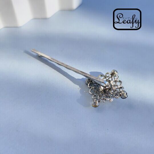 Leafy ヘアピン レディース ブラック 黒 シルバー 銀 スクエア 透かし彫り アンティーク調 ビンテージ風 ヘアアクセサリー ヘアアレンジ 髪留め 髪飾り 普段使い プレゼント お出かけ パーティー ha0046sb