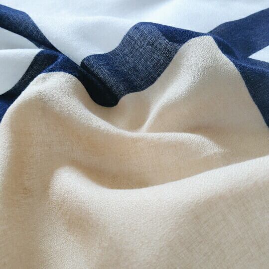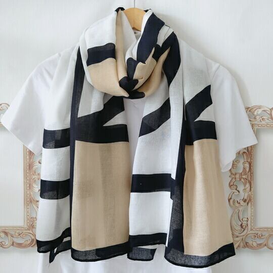 どんな色のアウターにも合わせやすくベージュとホワイトの色合いにダイナミックな幾何学模様の大判薄手ストール 肌触りが良く素材 季節を問わず快適にご使用できるのが魅力 どんな装いにも洗練された印象を加え シンプルながらも存在感を放ち春 秋 夏 ma02352abe