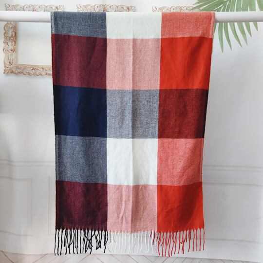 定番のチェックストール 印象的なカラーコンビネーション、ビビッドな発色の良さにこだわり カラーがポイントになるよう配色設計したチェック柄 ネックをふんわり包み込み優しい印象に 大判ストール 大きいサイズ ブランケット n-ma0047ar 秋冬マフラー