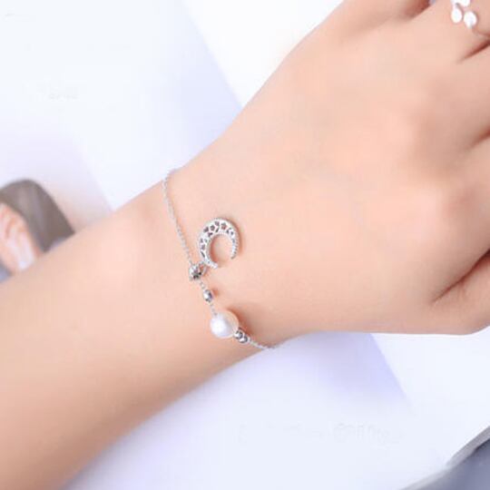 Terse☆ S925 銀の星と月のチェーンブレスレット フェイクパール付き 手元に神秘的な雰囲気を演出 プレゼント ギフト 記念日 ホワイトデー パーティー 披露宴 二次会 お呼ばれ 夜空 スター ムーン シルバー bl0019a 冠婚葬祭 入園式 入学式 卒業式 卒園式 宇宙
