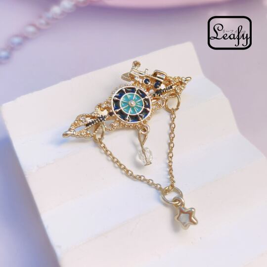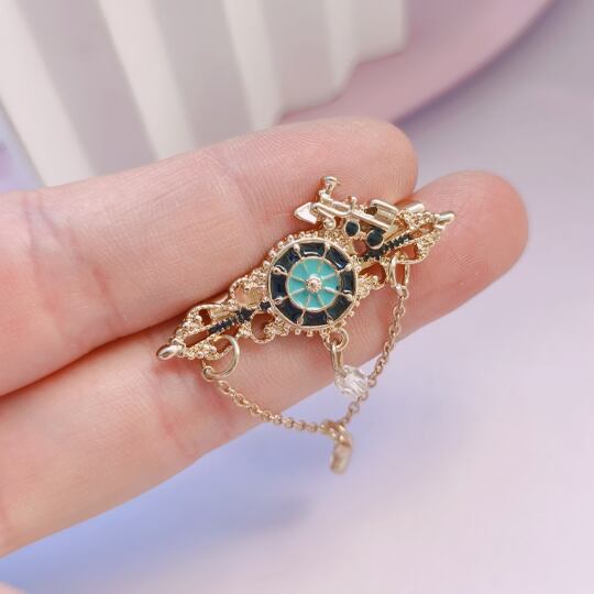 機関車の車輪をイメージしたピンブローチ ブルー おしゃれな星のチェーンつき 高級感 男女兼用 プレゼント ギフト 電車 トレイン brooch-A134abl
