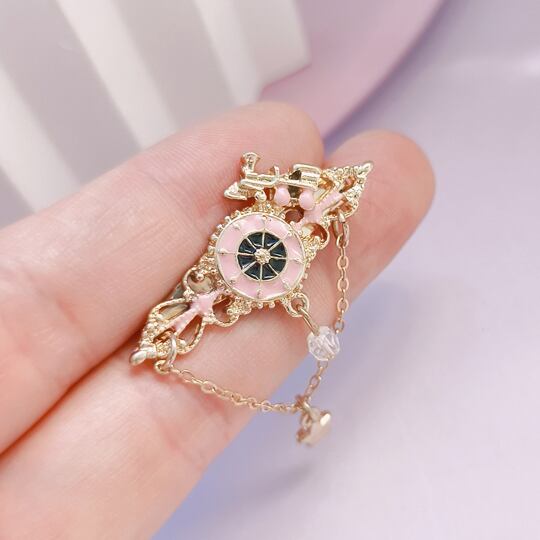 機関車の車輪をイメージしたピンブローチ ピンクおしゃれな星のチェーンつき 高級感 男女兼用 プレゼント ギフト 電車 トレイン br0134apk
