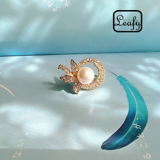 Leafyピンブローチ レディース ゴールド 金 パール 華やか おしゃれ コーディネート 帽子やストールにも キラキラ ラインストーン お出かけ パーティー 結婚式 二次会 デイリー 普段使い プレゼント br0004-go 冠婚葬祭 成人祝い 内祝い 進学祝い