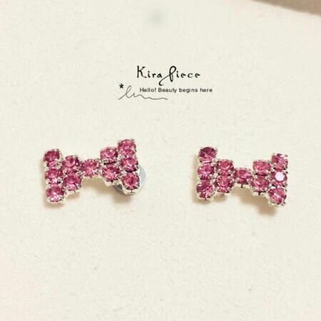 ct0x01 クリア(clean stone)/ピンク(PINK)/ブラック(BLACK) かわいいキラキララインストーンリボンモチーフ磁石ピアスイヤリングノーホールOK【メール便Ok】ステンレスピアス | キラキラピアス