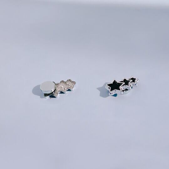 Terse 簡単☆磁石で耳たぶを挟むだけ!かわいいミニスターが三つ連なったマグネットピアス 1ペア レディース 星 ブラック 黒 磁石ピアス ノンホールイヤリング エナメル ちょこっとお洒落 お出かけ デート 普段使い ct0095