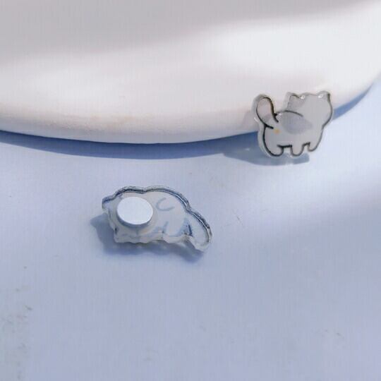 可愛い仔猫の磁石ピアス 柔らかい細かいうぶ毛に覆われており、ややぽっちゃりしたおなか周り、短い手足を持つ姿からは、子猫のような愛らしさを感じられるピアス ノンホール 左右非対称 アシストピアス ねこ ペット キャット 猫好きさんへのプレゼントにも ct0104a