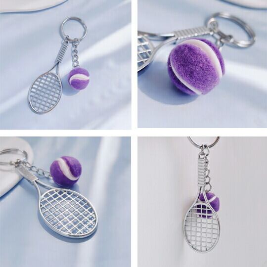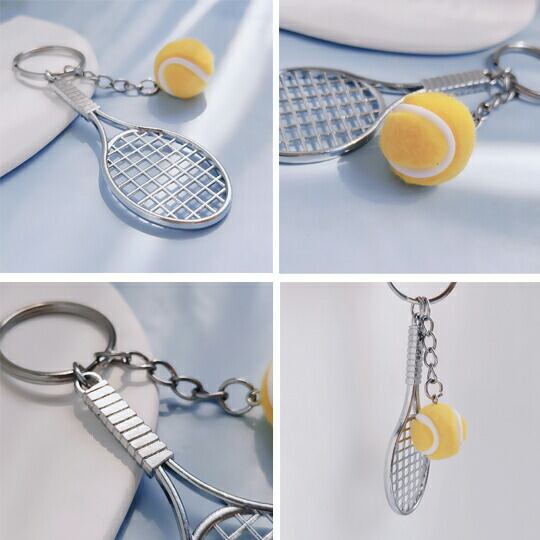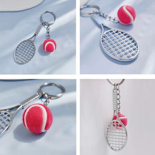 可愛いテニス&テニスボールモチーフミニチュアキーホルダー テニス好きの方へのプレゼントやテニス好きの方にオススメ `バックチャームキーリングアクセサリー ソフトテニス部の方へのかわいいテニスラケット贈り物 もうバッグの中で迷子にならない ke0015a