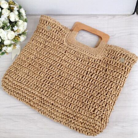 ナチュラルな木製ハンドルと天然素材を組み合わせた、軽くて柔らかいバッグ ワンピースやデニム、浴衣等、春夏のコーディネートに併せやすいデザイン マチの広さと丸みのあるデザインは女性らしい雰囲気 大きめ 籠バッグ or0077co