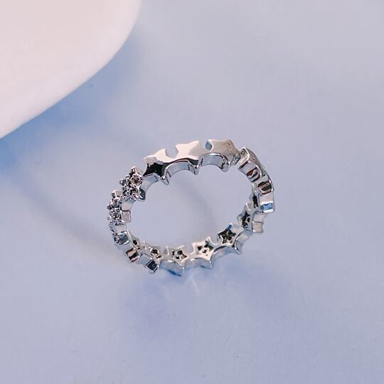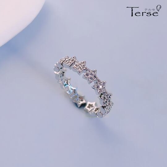 Terse シンプルながらも華やかさをもったCZダイヤモンドスターリング 指元を綺麗に、そして華やかに飾るようなキュービックジルコニアリング シンプルなデザインですので様々なシーンでお気軽にお使いいただけるフォークリング サイズ調整可 星 夜空 シルバー色 rs0332as