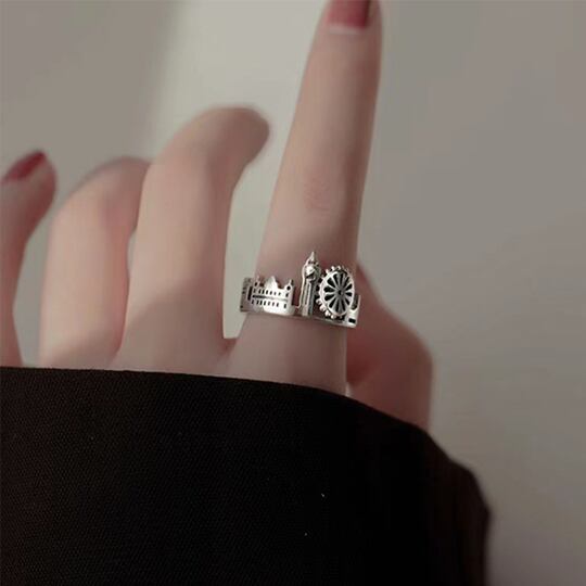 Terse 歴史を感じさせるロンドンにあるウェストミンスター宮殿&ビッグ・ベン ロンドン・アイなど ロンドンの街並み景色をアブストラクトデザイン指輪 ヴィンテージ加工ならではのオールド感がありとても雰囲気があるフォークリング シルバー925 イギリスrs0352a