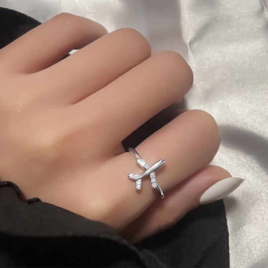 Terse 旅行気分で楽しくなる飛行機モチーフのシルバー925フォークリング 翼に数十個の小粒なCZダイヤをびっしりと敷き詰めたデザイン うっとりする贅沢な輝きも、いやらしさを感じない上品さが特徴 キ レディース エアライン 普段使い お出かけイベント 女子会 rs0396a