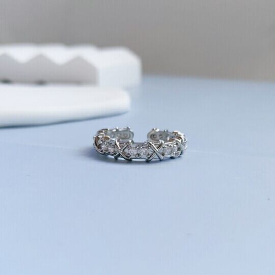 Terse 洗練されたクロスデザインが魅力のCZダイヤ指輪 透明度の高いキュービックジルコニアを使用し、上品な輝きを放ちます 開け口があるため、着脱が簡単で、指に優しくフィット 日常の装いに華やかさを添えるだけでなく、特別なシーンでも存在感を発揮します rs0418a