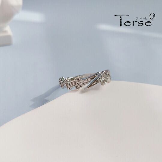 Terse CZダイヤの稲妻をモチーフ指輪 いなびかりは恵みの雨を呼び、豊かな実りを象徴する縁起の良い天象として古くから親しまれ そんな稲妻の力強さと美しさを指先に宿し、身に着ける人に幸運をもたらします シンプルながらも印象的なデザインは幅広く活躍 rs0419a