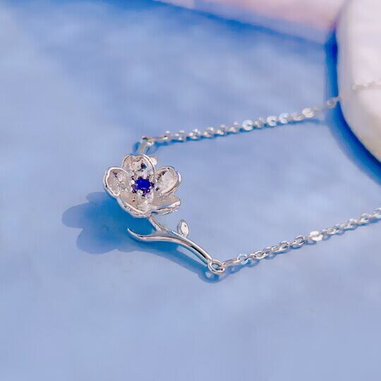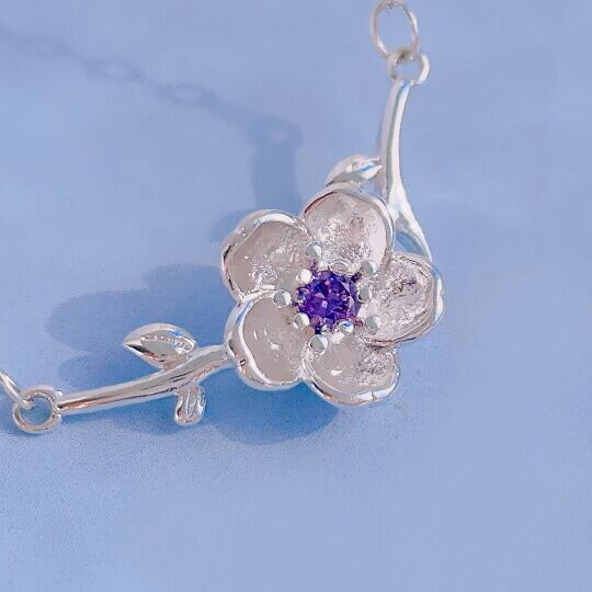 Terse 銀の枝に咲いた桜のネックレス ペンダント 紫色に輝くジルコニアが大人の女性の魅力を引き立てます 花 チェリーブロッサム 一輪 フラワー レディース パープル プレゼント ギフト パーティー 二次会 sn0073apu☆花火大会 2月誕生石