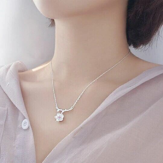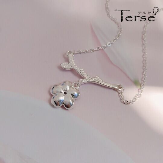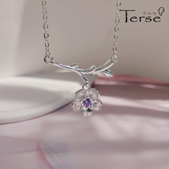 Terse S925 銀の枝と桜のネックレス さくらペンダント パープル 輝くジルコニアが大人の女性の魅力を引き立てます 花 チェリーブロッサム 一輪 フラワー レディース パープル プレゼント ギフト お出かけ パーティー 二次会 sn0074apu 花火大会2月誕生石