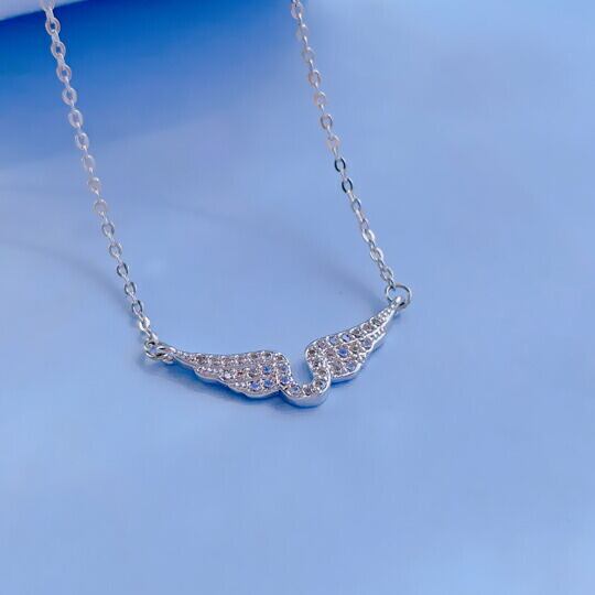 Leafyリーフィ☆天使の翼モチーフネックレス ペンダント 散りばめられたジルコニアが上品な輝きを放ちます レディース 普段使い お出かけ プレゼント ギフト お呼ばれ パーティー ウィング エンジェル 羽 フェザー シルバー sn0082a 4月誕生石