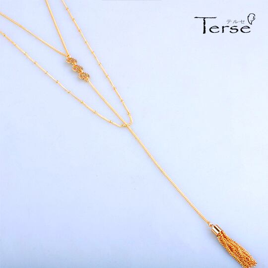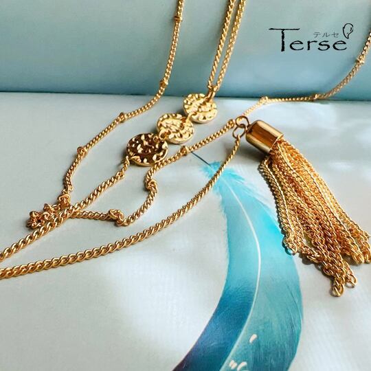 Terse 2連ロングチェーンネックレス Y字ロングネックレス ペンダント レディース ゴールド 金 円盤 ディスク 環 鍛金 タッセル おしゃれ 清楚 上品 普段使い お出かけ パーティー 二次会 デート 誕生日 プレゼント SN0120A