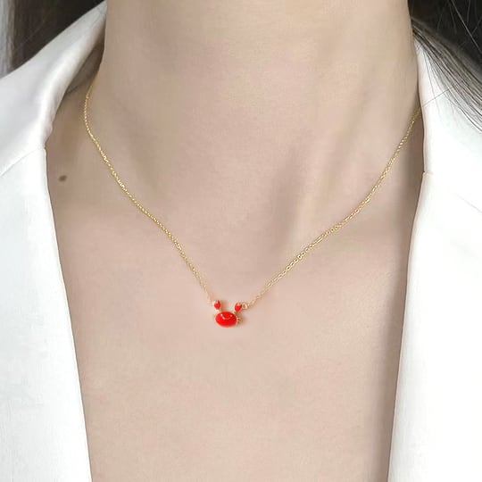 Terse シルバーチェーンで涼しげに☆お出かけが楽しくなる♪にっこりカニさんネックレス リゾート ペンダント レディース 赤 レッド エナメル 面白い ユニーク 夏 サマー 海 浜辺 キュート 蟹 星座 かに座 誕生日 人気 イベント パーティー デート 普段使い sn0224ag