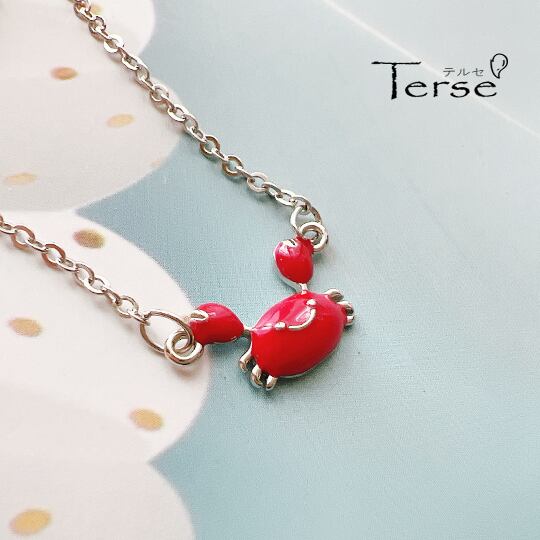 Terse シルバーチェーンで涼しげに☆お出かけが楽しくなる♪にっこりカニさんネックレス リゾート ペンダント レディース 赤 レッド エナメル 面白い ユニーク 夏 サマー 海 浜辺 キュート 蟹 星座 かに座 誕生日 人気 イベント パーティー デート 普段使い sn0224as
