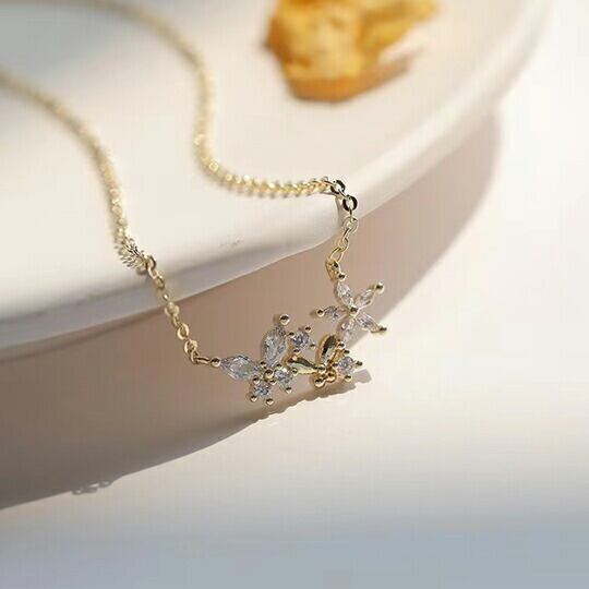 Terse 華やかなフラワーモチーフのショートネックレス 小さな花は可憐な蝶々、華やかさを加えたジルコニア素材にもこだわり、大人な女性に身に着けて欲しい上品で華やかなペンダント 華奢で可愛らしく、優しい雰囲気は大人のフェミニンスタイルにぴったり 春 sn0320a