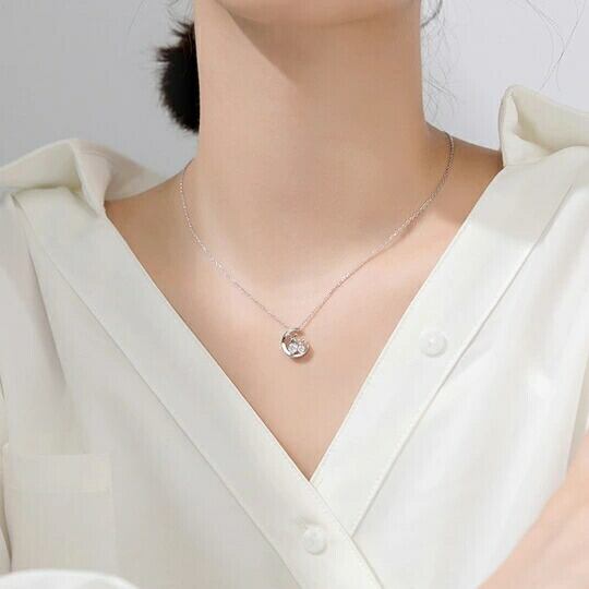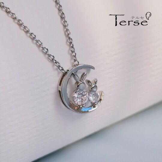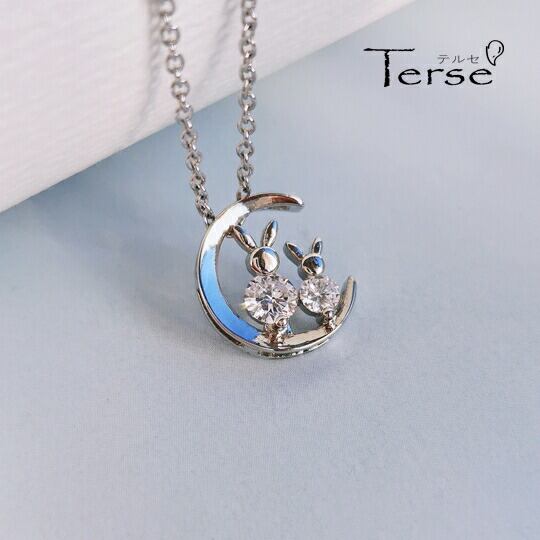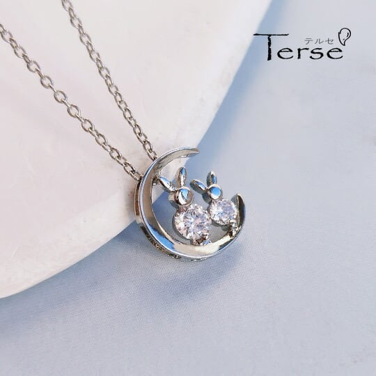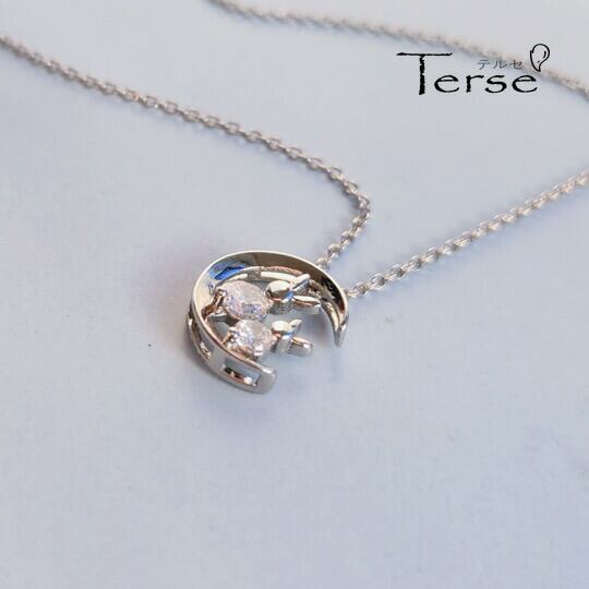 Terse 三日月に並んで座っている二匹うさぎ CZダイヤ ペンダント 干支キュービックジルコニア 兎 ウサギ 動物 アニマル お正月 うさぎの飛び跳ねる様子から「飛躍」を象徴 努力が実を結ぶよう願う意味 仕事や私生活での成功を願って身に着けられます sn0323as
