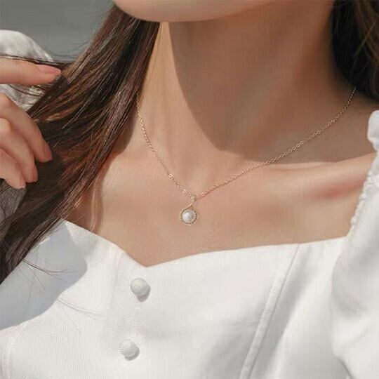 サイズ:チェーン:約40cm(+5.0cm延長可) ペンダント約:19mm×12mm 淡水パール約7mm