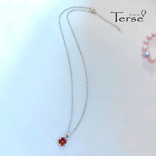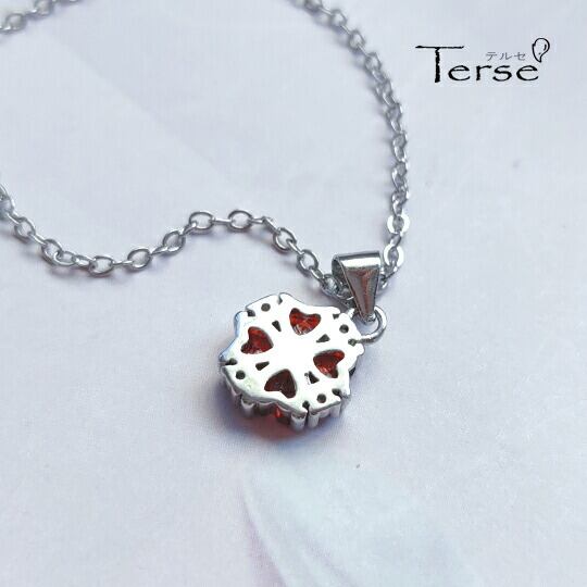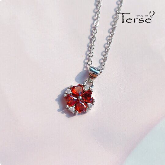 Terse 綺麗なハート型の ルビー色CZダイヤ が四個 四つ葉のクローバーをデザインしたペンダント チョット華やかな キュービックジルコニア ネックレス クローバーをCZダイヤで挟み 上品な 華やかなデザイン プレゼント 7月誕生石 上品 お洒落 sn0297a Red