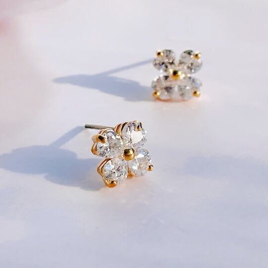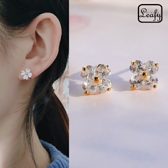 Leafy 可愛いキラキラ透明ジルコニアのキュートなフラワーモチーフピアス♪桜モチーフ 華やかで可愛らしい印象に☆どんなコーデにも合わせやすいので毎日のお洒落に♪ゴールド/クリア(gold/clean stone)x04244agc