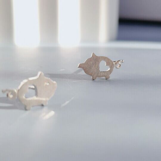 Terse☆シルバー925 2019年干支 亥年 いのしし 可愛ニコニコブタさんピアス ハートのくり抜きデザインとくるりんしっぽがキュート♪ハロウィンやクリスマスパーティーで盛り上がろう♪お友達とお揃いコーデにも◎豚 お正月 アニマル 動物 猪 sa0031a