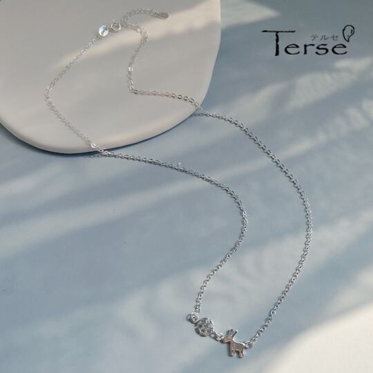 このTerseのネックレスは、雪の結晶やトナカイ、そりをモチーフにした冬らしいデザインが特徴です。ダイヤモンドダストの輝きが、まるで雪のひらひら舞う様子を思わせる上品な雰囲気を演出します。クリスマスや冬の特別な夜にぴったりなアクセサリーです!