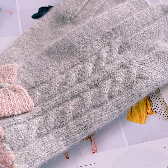 デイリーに愛用できるウール&ラビットのニットグローブ、ワンポイントのリボンでクラス感あるルックへとアップグレード カジュアルからフェミニンまで、どんな装いにも似合うカラーリングも魅力 レディース 手袋 ニュアンス カラー gl0011a