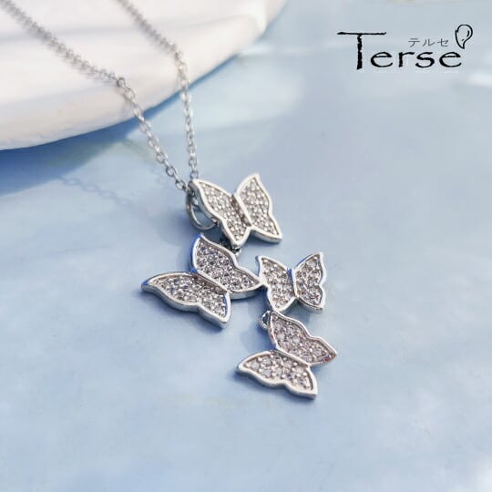 ■春の訪れを感じさせる優雅な蝶モチーフネックレス!Terseシルバー925キラキラジルコニアの蝶モチーフネックレス!