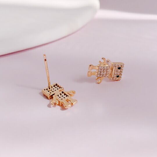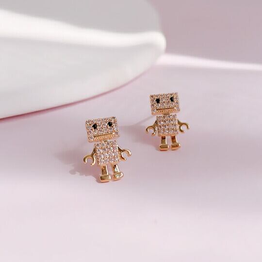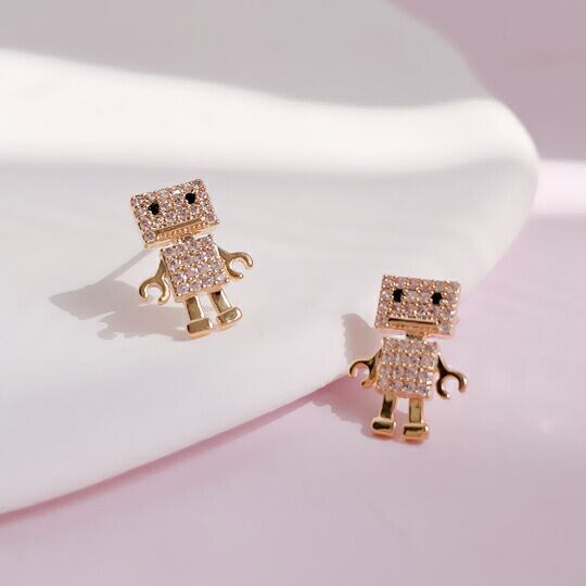 Leafy 可愛いロボットピアス オシャレな女性の中でひそかにブームになっているロボットモチーフ ロボットの目とボディーにCZダイヤをぎっしり詰め込んで、とってもキュートなロボットアクセサリーが出来上がりました♪プレゼント sr02276yg 母の日 14KGP ゴールドメッキ