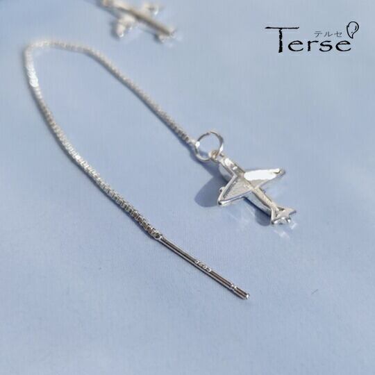 Terse 旅行気分でわくわくしてきそうな飛行機モチーフ チェーンピアス アメリカンピアス ゆらゆら揺れて今にも飛んでいきそう 1ペア 空港 空 エアプレイン プレゼント 普段使い お出かけ パーティー S925ポストSE0080A