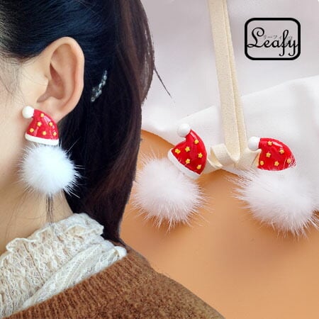■クリスマス気分を盛り上げる!Leafy サンタさんの帽子と真っ白ふわふわファーのピアス♪