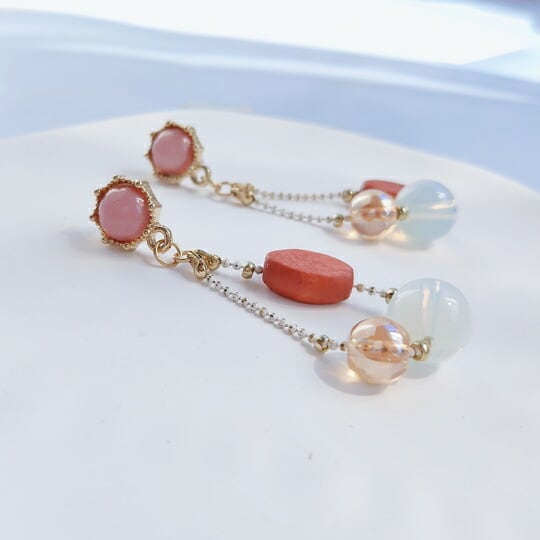 このピアスは、ストーンとウッド素材のユニークな組み合わせが特長で、軽やかな揺れ感がポイント。デートや女子会、パーティー、食事会など、様々なシーンでスタイリングを楽しむことができること間違いなしです。自分へのご褒美や、大切な方へのプレゼントとしても喜ばれるアイテムです。ぜひ、この可愛らしいスウィングピアスで、あなたの日常をもっとおしゃれに彩ってみてください!