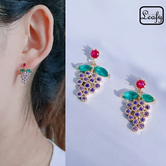 ■透明感溢れるキラキラジルコニアで魅せる葡萄ピアス!Leafy キラキラジルコニア葡萄ピアス