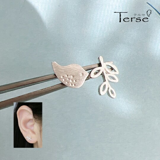 ■可愛らしい小鳥と葉っぱのモチーフで心華やぐ耳元に!Terseの小鳥&木の葉モチーフピアスで大人可愛い印象を演出!