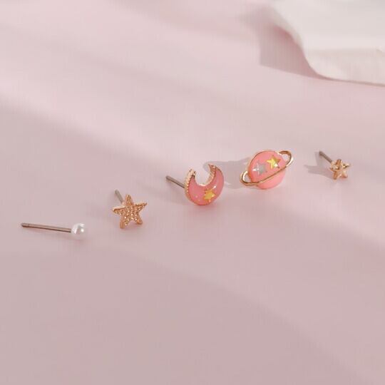 Terse お得なコスモピアスセット (5点入) ピンク系 その日の気分で 気軽に楽しめる 三日月 月 ムーン 土星 サターン 星 スター 流星 夜空 パール 真珠 ゴールド 金 ミニ 小さい かわいい 普段使い お出かけ イベント パーティー デート プレゼント 宇宙 sa0091apk