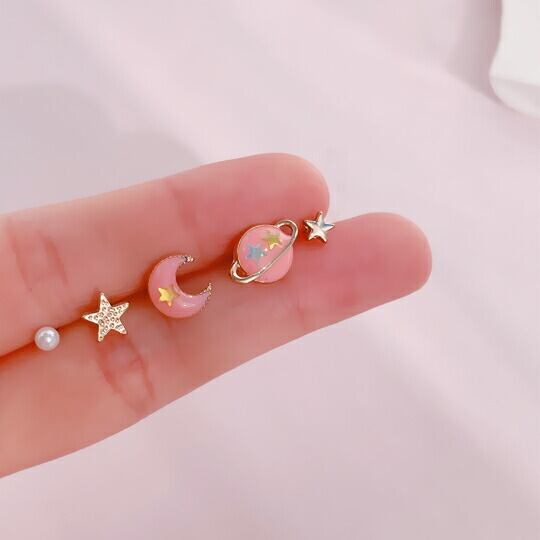 ■可愛らしい宇宙モチーフで耳元を華やかに!Terseのコスモピアスセットで気軽に楽しめるデザインを演出!