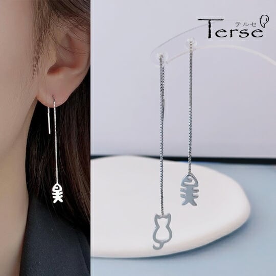 ■可愛い小猫とお魚の骨が耳元に遊び心をプラス!Terseの「小猫とお魚の骨のアシンメトリーピアス」で、あなたのスタイルにユニークなストーリーを添えてみませんか?
